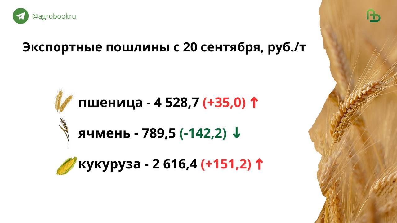 С 20 сентября экспортная пошлина на пшеницу выросла, на ячмень – немного снизилась.