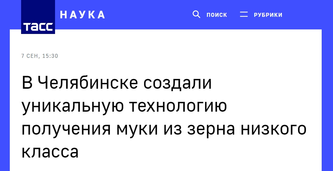 Ученые Южно-Уральского государственного университета разработали первую в России технологию получения муки из пшеницы, овса и ячменя низкого класса. Изобретение, как сообщает ТАСС, позволит минимизировать потери в сельском хозяйстве. Технология заключается в том, чтобы высушить слегка пророщённое фуражное зерно, затем смолоть его в муку и в вакуумной упаковке отправить на мельницу.