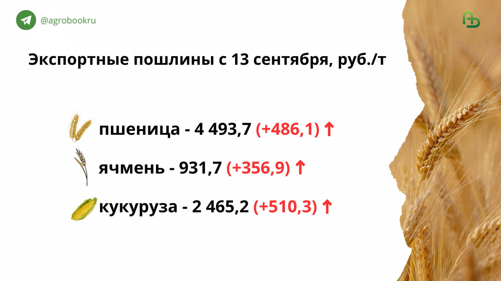 Но на сельхозпроизводителе это толком не отражается, потому что экспортные пошлины продолжают изымать из рынка деньги. С 13 сентября сборы вырастут по всем зерновым.