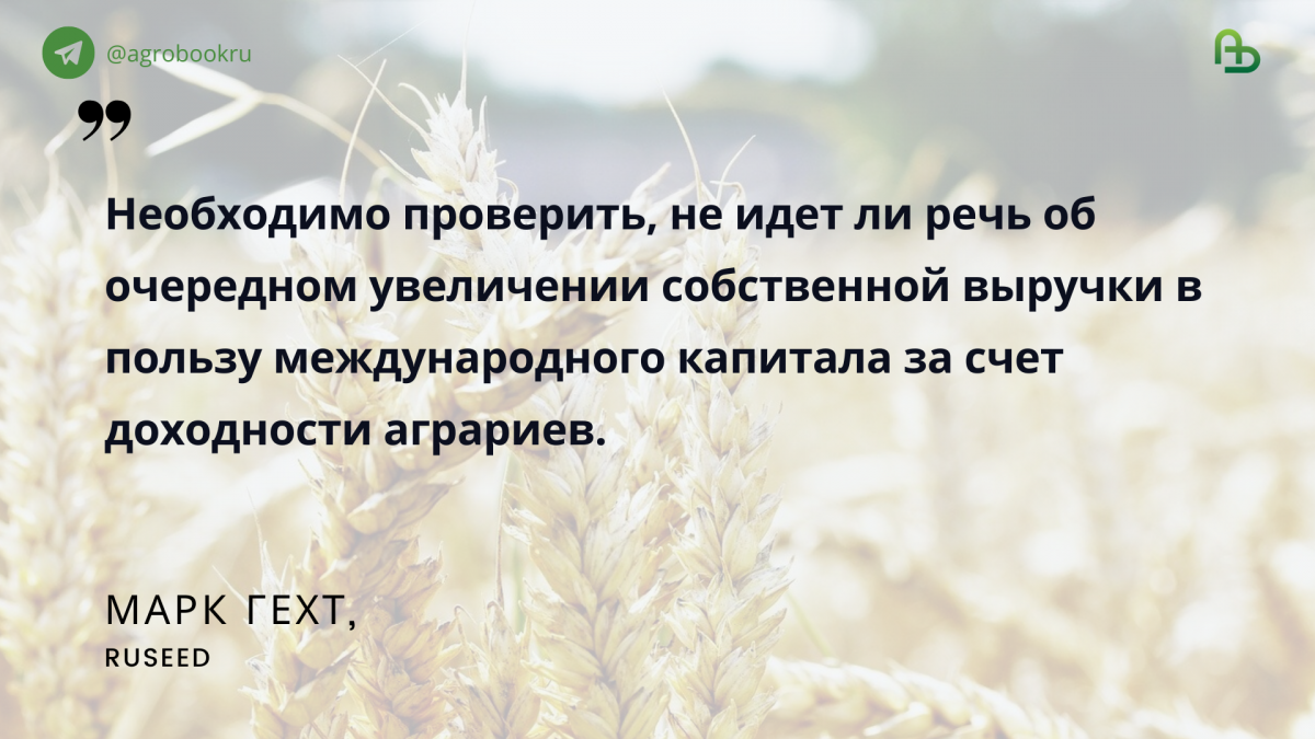 «Необходимо проверить, не идет ли речь об очередном увеличении собственной выручки в пользу международного капитала за счёт доходности аграриев», – сказал он.