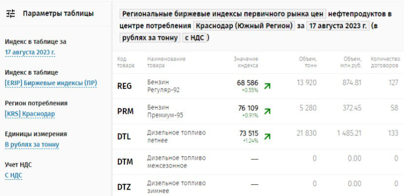 В четверг, 17 августа, на Санкт-Петербургской международной товарно-сырьевой бирже произошёл очередной пик: цена на дизельное топливо достигла 68 тысяч рублей за тонну – в среднем по стране. На юге дизель продавался намного дороже: в Ростове-на-Дону топливо стоило более 73 тысяч рублей за тонну, в Краснодаре – 73 515 рублей. В других регионах оно было дешевле, причём наблюдается интересная тенденция: чем ближе к Кубани, тем дороже топливо.