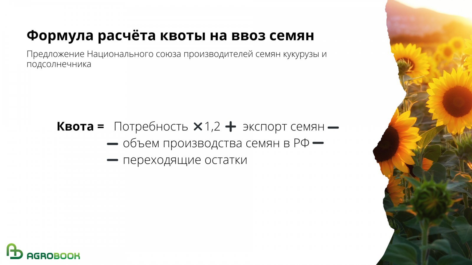 Подробный анализ опубликован на сайте НАПСКиП. В нём говорится, что квоты на ввоз семян должны рассчитываться по каждой импортозависимой культуре по следующей формуле: к потребности в семенах прибавить 20% резерва и вычесть объёмы производства семян отечественной и иностранной селекции, в текущем году для посевной следующего года.
