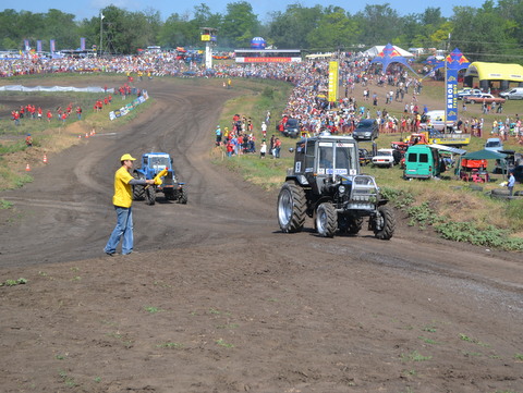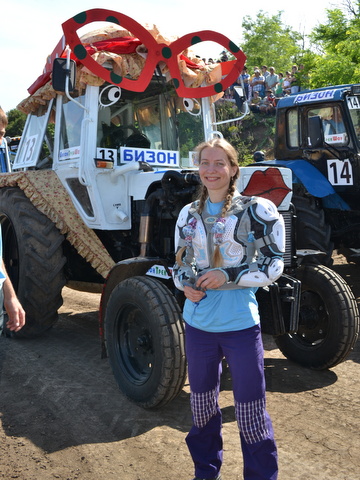 Конечно же, самой главной «фишкой» этого сезона стала Ольга Стебихова из Псковской области, девушка, впервые участвующая в качестве пилота в гонках на тракторах. Хрупкая Ольга со своим соблазнительным трактором-девочкой, между прочим, держалась не хуже, а то и лучше некоторых мужчин. По итогам первых заездов из 30 с лишним участников она шла на 16 месте и даже вышла на этап парных заездов, в которых участвовали всего 8 пар гоночных тракторов. Зрители поддерживали, как могли: свистели, кричали, хлопали, но в середине гонок Оле все же пришлось сойти с трассы. И все равно она настоящая умница!