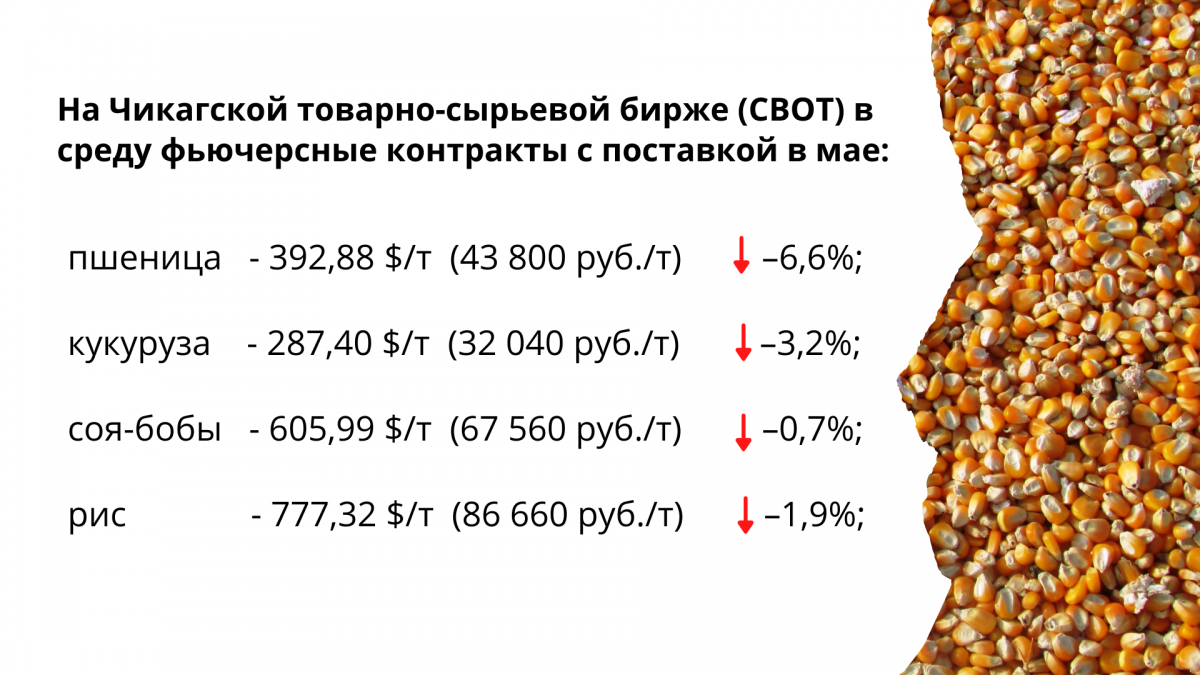 Снижение затронуло также кукурузу и – в гораздо меньшей степени – соевые бобы.