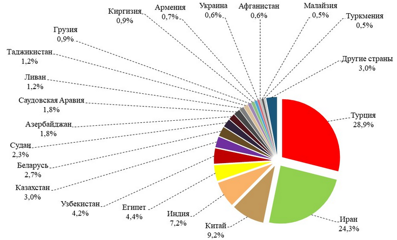 Глава Комитета Госдумы по финансовому рынку Анатолий Аксаков заметил, что вывоз зерна через Казахстан вырос в пять раз в последние дни. Всего же с начала сезона, по данным Центра оценки качества зерна, Казахстан приобрёл 2,5 миллиона тонн зерна, из них два миллиона – пшеницы. Это на 82% больше, чем в предыдущем сезоне.
