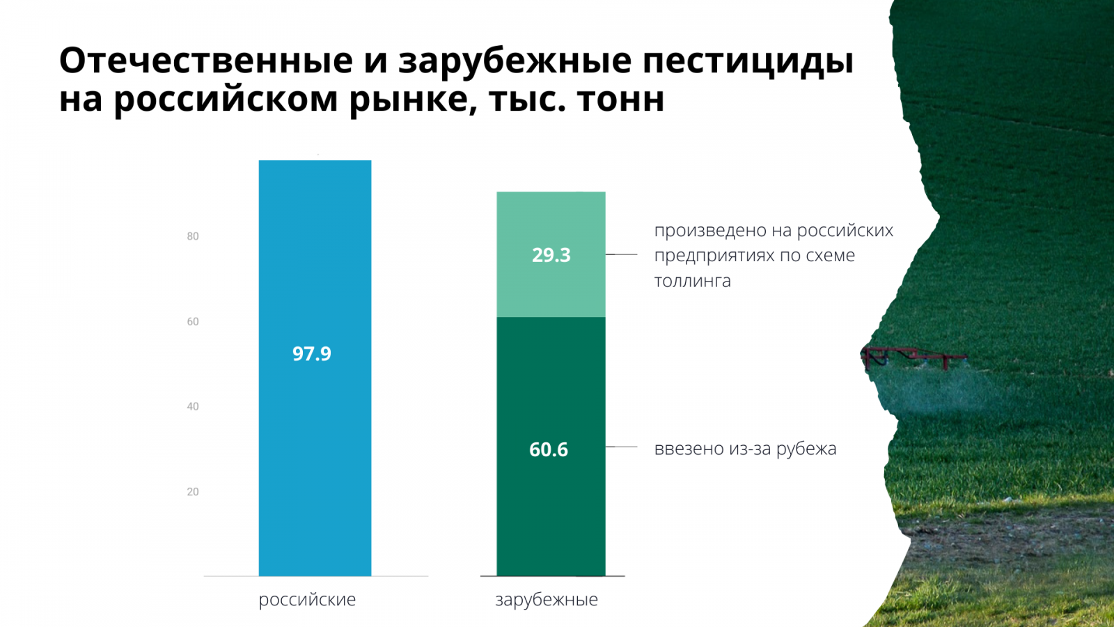 Со средствами химзащиты растений ситуация немного иная: у дилеров иностранных компаний, которые привозят пестициды, не оказалось некоторых позиций. Ситуация пока не выглядит критичной, однако доля отечественных пестицидов на рынке не так уж велика. Например, в 2020 году продажи российских компаний в натуральном выражении составили 97,9 тысяч тонн. Зарубежные компании продали российским аграриям почти 90 тысяч тонн пестицидов, причём 60 тысяч ввезли и около 30 тысяч тонн произвели на российских предприятиях по схеме: «я тебе – сырьё, ты мне – готовый продукт».