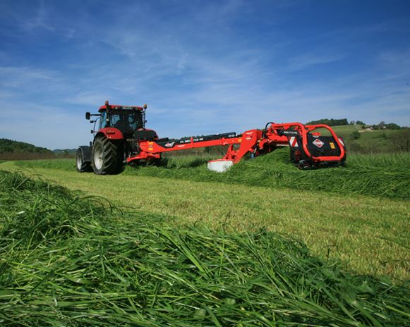 Первыми на кормозаготовку выходят косилки. Наиболее производительными машинами считаются косилки «бабочки» имеющие ширину захвата до 10 м и рабочей скоростью д, и оборудованные ленточными транспортерами для формирования валка. Одновременная укладка массы в один валок позволяет значительно ускорить процесс уборки, минуя операцию сдваивания валков роторными граблями (например, модели КУН (KUHN) FC-883 RA). Однако при этом необходимо учитывать процесс подвяливания скошенной массы. Так, для получения качественного сенажа из бобовых трав (клевер, люцерна и др.) степень сухого вещества должна достигать до 40−45% СВ в кг сенажа. А кошение широкозахватной косилкой в один валок не позволяет достичь равномерности и нужной степени подвяливания. Чтобы этого избежать, можно поднять транспортеры и косить в три валка или включить реверс одного из транспортеров и косить два валка в один.