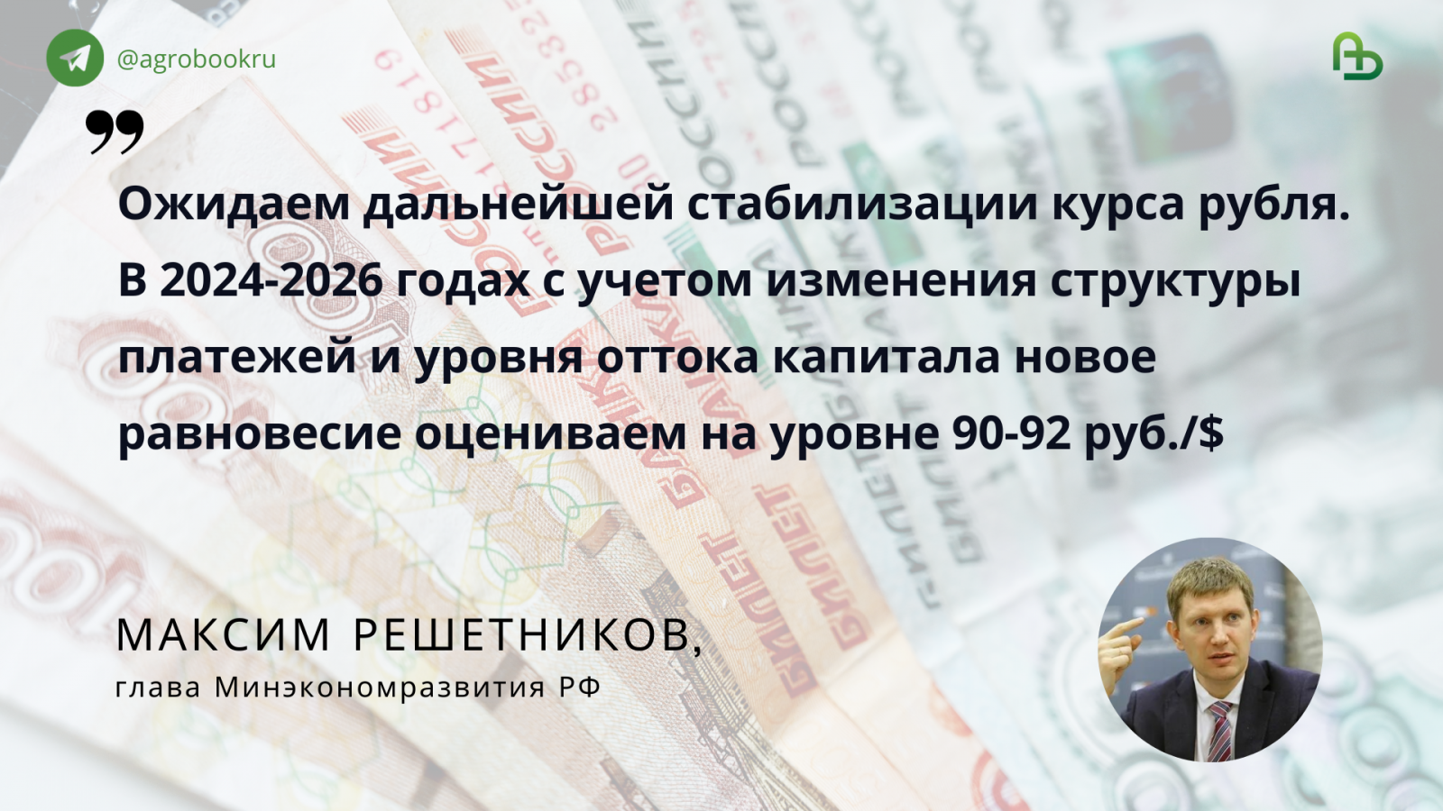 Ориентир на будущее, на наш взгляд, дают два заявления, сделанные на днях представителями власти в России. Министр экономического развития Максим Решётников заявил, что ведомство ожидает стабилизации рубля и ожидает, что среднегодовой курс доллара в 2024 году составит 90 рублей.