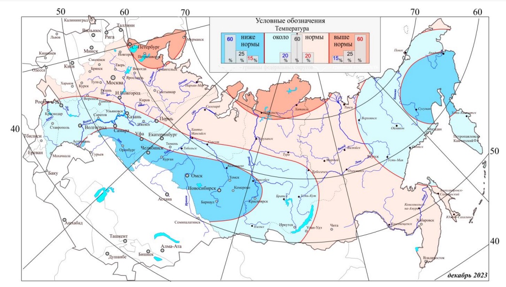 В ноябре температуру выше нормы ждём в центре и на юго-востоке Сибири. В декабре холоднее обычного будет на юге Приволжского и Уральского федеральных округов. Январь особых сюрпризов не принесёт, а в феврале в большинстве регионов Центрального и Приволжского федеральных округов, на юге Урала, на юго-западе и в центре Сибири ожидаем температуру выше нормы.