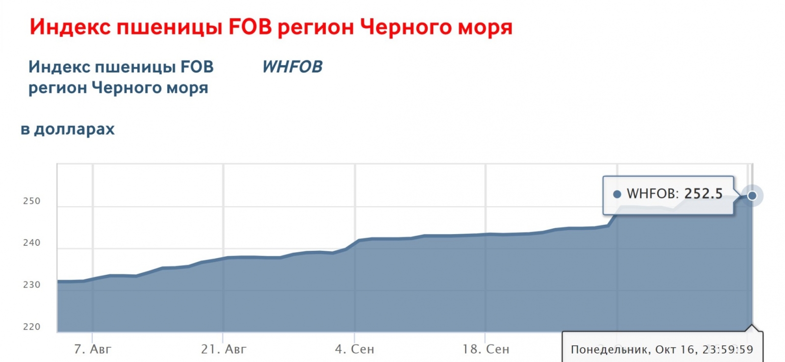 Падение испытал также индекс ячменя: по сравнению с концом сентября – минус 20 с лишним долларов за тонну FOB. И только индекс пшеницы показывает уверенный рост.