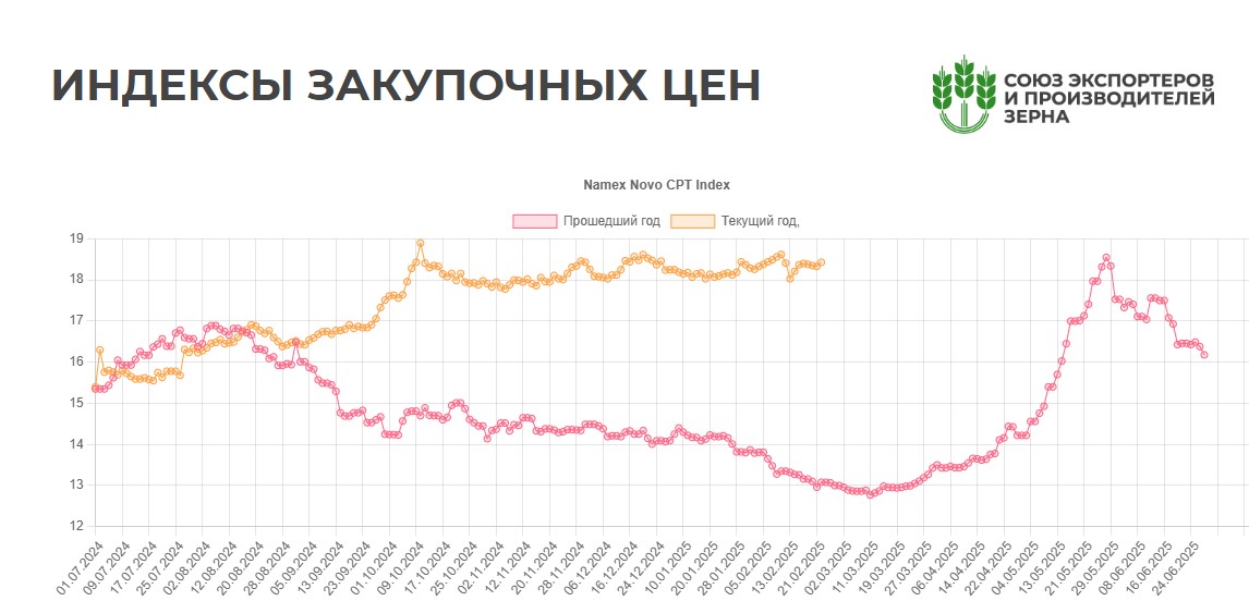 Цены на пшеницу (4 класс, 12,5% протеин) в глубоководных портах несколько выросли на фоне низкого уровня предложений со стороны фермеров. Однако если посмотреть на долгосрочный график, видно, что в целом цена топчется на одном месте. Внутренний рынок пшеницы на текущей неделе не претерпел значительных изменений на европейской части России и немного укрепился только в Сибири, отметили в «Русагротрансе». На Юге цены на пшеницу (4 класс, 12,5% протеин, EXW элеватор) оставались около 16000-16500 руб./т без НДС, в Центре – 15700-16000 руб./т, в Поволжье 15500-16200 руб./т. В Центре и Поволжье активный спрос формирует переработка. В Сибири цены на пшеницу 4 класса выросли до 11 800-12 300 руб./т (+250 руб./т).