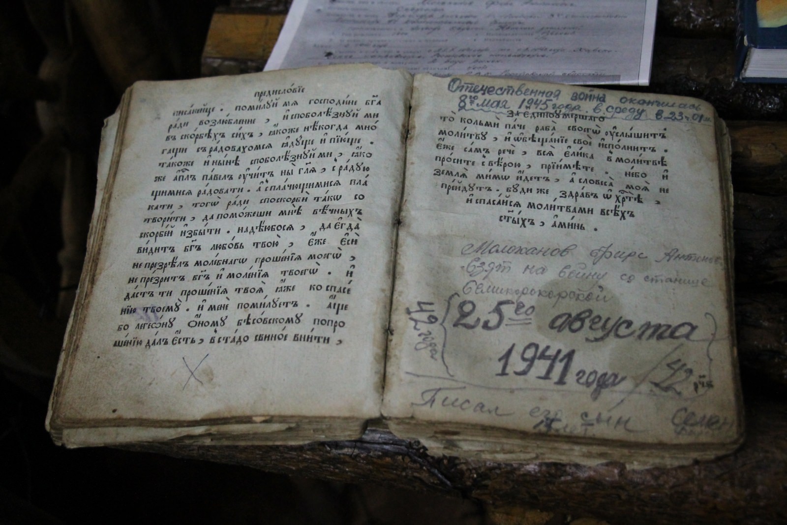 Многие экспонаты в прямом смысле с отметками прошлого. К примеру, псалтырь, где чернилами на страницах выведено: «Отечественная война окончена 8 мая 1945 года в среду в 23 часа 01 минуту», «Молоканов Фирс Антонович взят на войну со ст. Семикаракорской 25 августа 1941 года. Писал его сын Семен».