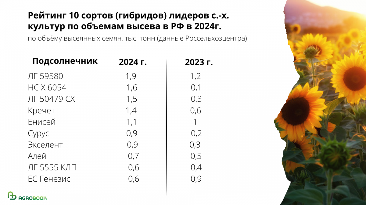 На прошлой неделе «Россельхозцентр» опубликовал список самых востребованных сортов и гибридов основных сельхозкультур. Рейтинг составлялся по объёму высеянных семян.