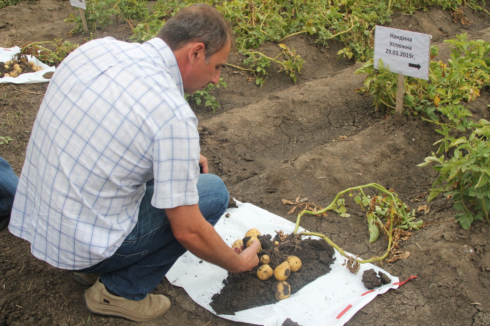 На полях КФХ глава «Устюженского картофеля» показал около десятка перспективных сортов. Из них особенно запомнился российский суперранний сорт Крепыш. Кузнецов рассказал, что в Вологде он даёт по 75 тонн с гектара, причём все корнеплоды – за 55 граммов.