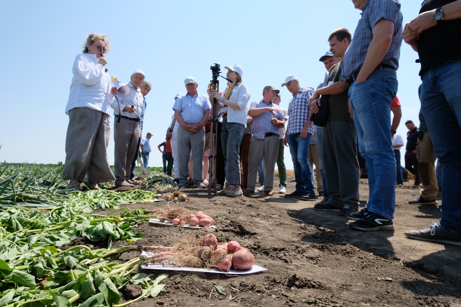 На Дне поля у Николая Юзефова сотрудники «НОРИКА-СЛАВИЯ» продемонстрировали сорта столового картофеля и рассказали о некоторых особенностях по их выращиванию.