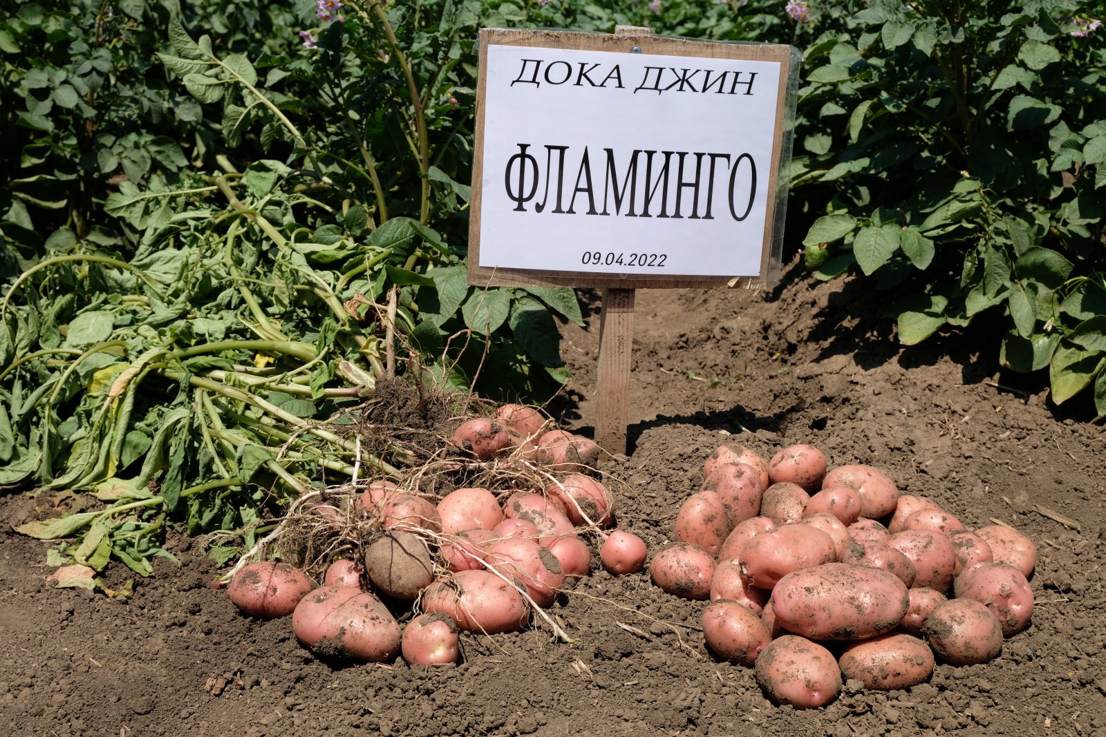 – У нас есть классические сорта с кремовой окраской кожуры и мякоти, есть с красной кожурой – по этой категории мы являемся лидерами российской селекции. Например, сорта Фламинго и Кармен имеют очень красивую кожуру, даже малиновую. Фламинго имеет шикарные вкусовые качества и очень устойчив к фитофторе, – рассказал Сергей Банадысев. – Кармен – сорт другого типа, он многоклубнёвый. Это сорт для тех, кому не нужны огромные клубни, но необходим одинаковый размер – 50-60 мм. Это всё интенсивные сорта, они способны давать урожай 60-80 тонн с гектара при поливе.