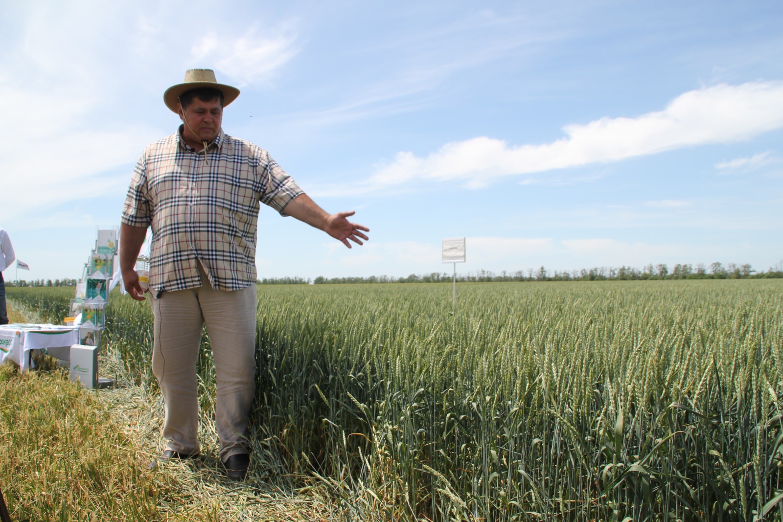 Экскурсию по опытным делянкам традиционно проводил доктор с/х наук, профессор РАН, главный научный сотрудник отдела селекции и семеноводства пшеницы и тритикале НЦЗ Александр Боровик.