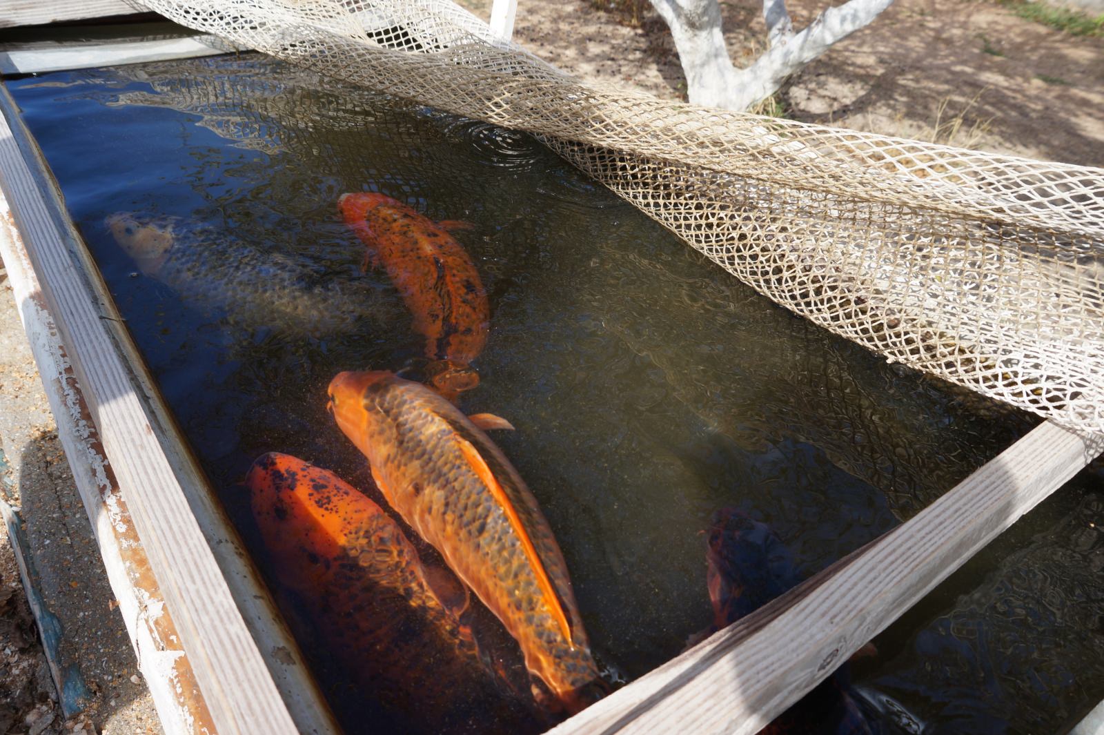 Карпы кои в каналах-отстойниках чистят воду от излишков водорослей