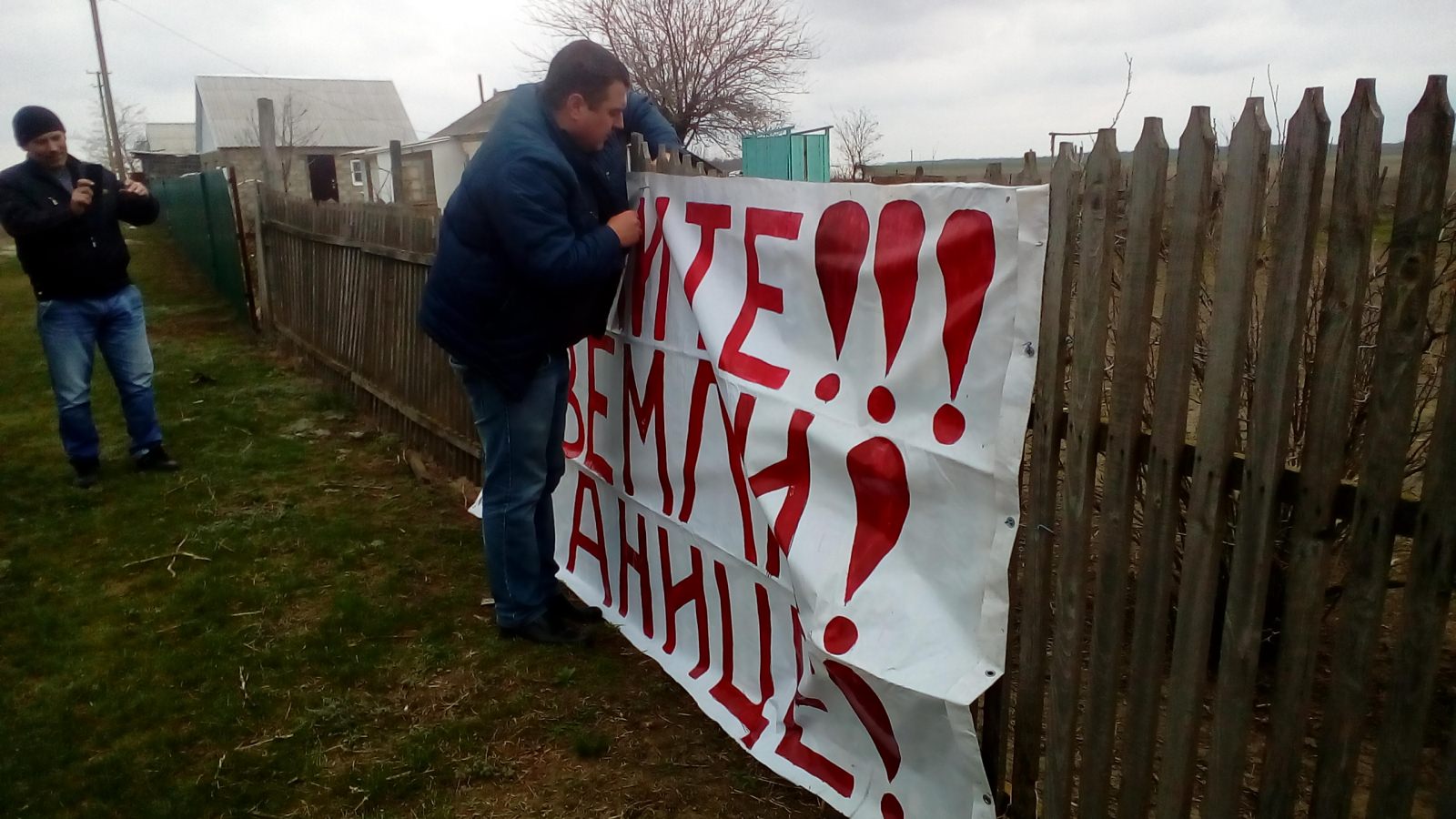 Плакаты совершенно невинного содержания: «Верните!!! Земли! Станице!», «В этой земле наши предки», «Верните детям хлеб! SOS», «Пастбище коровам – детям молоко».