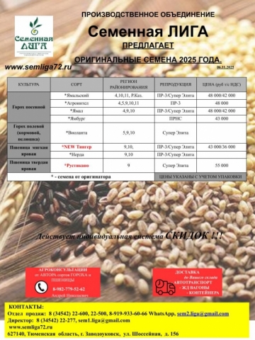 ООО «Семенная Лига» предлагает лучшие и наиболее распространённые сорта зерновых культур: оригинальные, элитные и репродукционные семена.