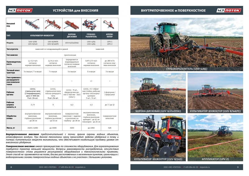 - техника внесения в почву (глубокорухлители / культиваторы-инжекторы / бороны / аппликаторы)