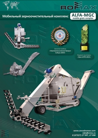 Продается ALFA-MGC 60 - мобильный зерноочистительный комплекс, производительностью 60 (100, 150, 200) т/ч. Сам загружает зерно в приемный отсек, сам очищает и сам выгружает очищенное зерно в автотранспорт. Прост в управлении. Легко перемещать по территории предприятия в любое выбранное рабочее место. Производитель: Завод ROMAX (http://www.zavodromax.ru).