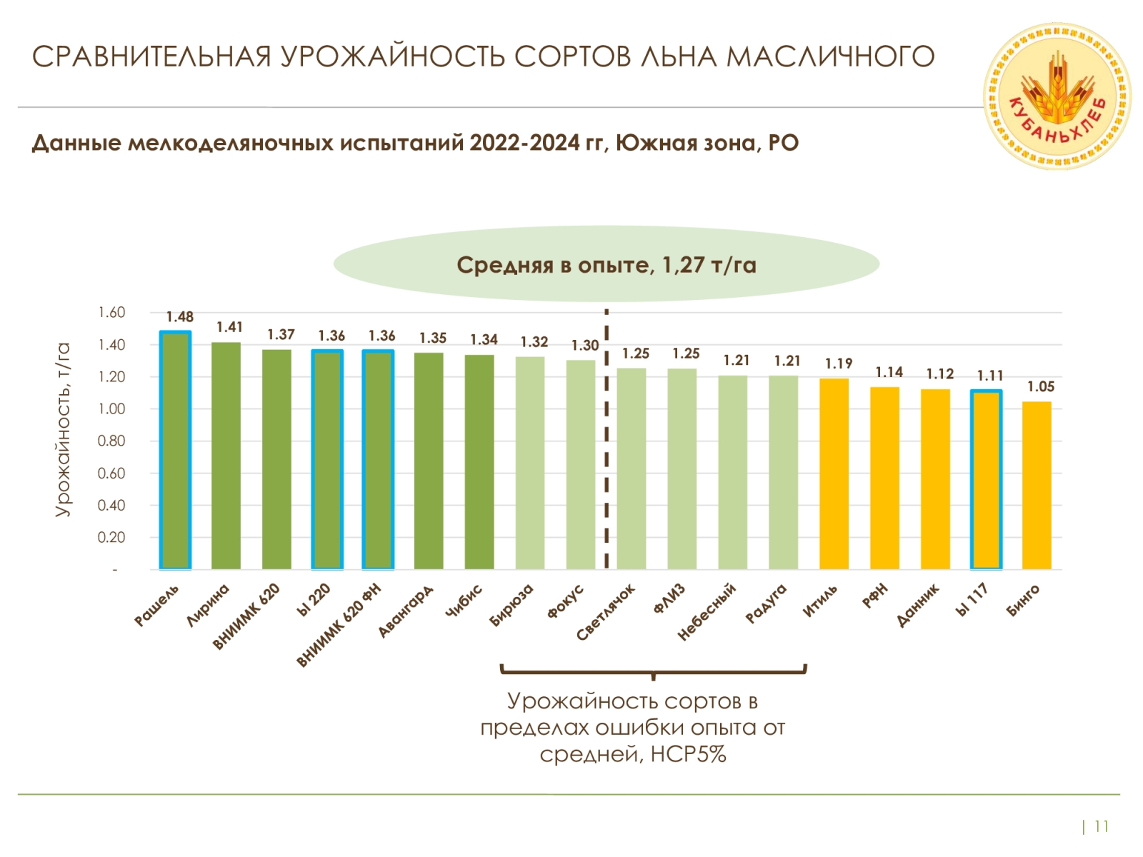 – У льна – достаточно большая палитра сортов как российской, так и иностранной селекции, – сказал Торос Корманукян, показав данные по урожайности. – Синим цветом отмечены те, что есть в производстве.