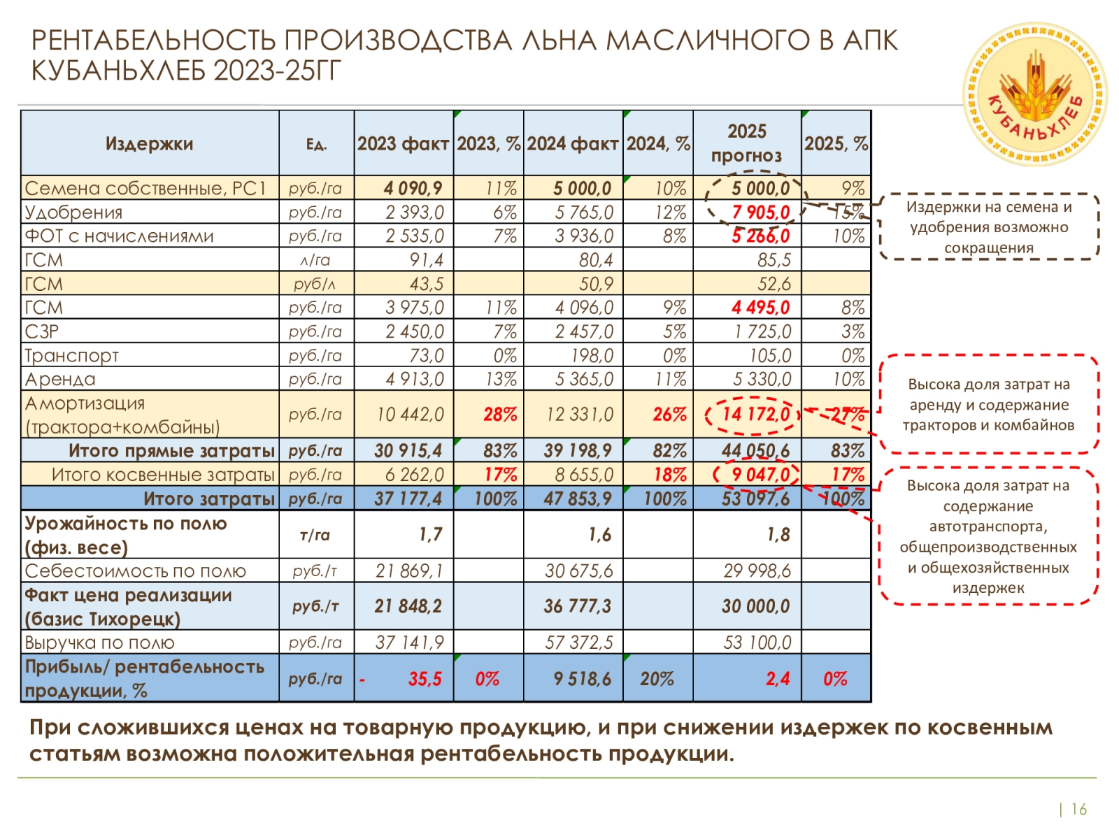 – В ваших условиях, особенно в условиях возделывания льна масличного у фермеров, рентабельность льна будет в районе 25-30%. Это считается достаточно хорошей доходностью в растениеводстве, – подытожил Торос Корманукян.