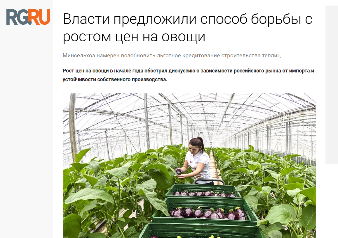 Минсельхоз РФ нашёл способ остановить рост цен на овощи. «Российская газета» сообщает, что в 2026 году ведомство возобновит льготное кредитование строительства теплиц – причём не только под традиционные огурцы и томаты, но и под так называемые нишевые культуры (кабачки, баклажаны, перцы), которые мы сейчас в основном импортируем.