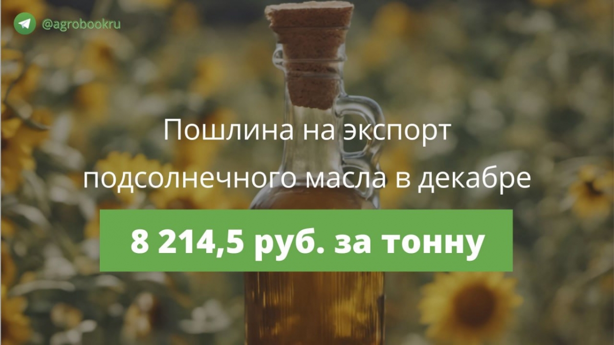 Стоит добавить, что с 1 декабря пошлина на экспорт подсолнечного масла вырастет почти на полторы тысячи рублей и составит 8 214,5 рубля.