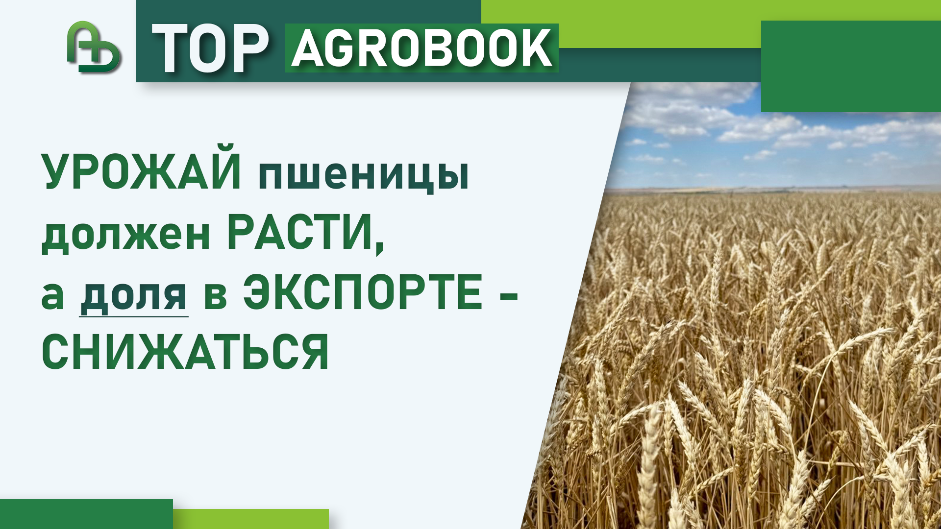 Новости аграрного рынка и сельского хозяйства → Урожай пшеницы должен расти, а доля в экспорте - снижаться | TOP Agrobook: обзор аграрных новостей [+ВИДЕО]