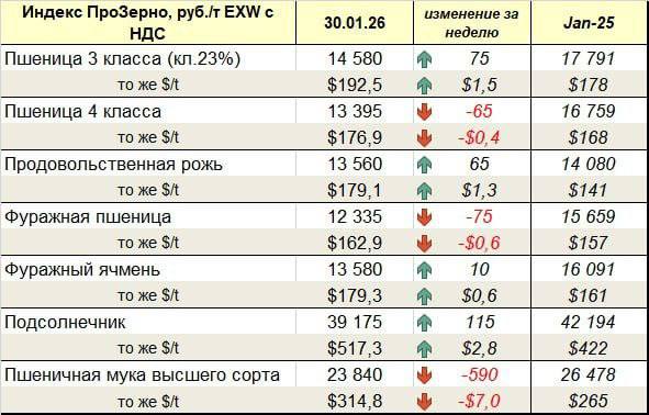 Отметим, что на этой неделе Росстат уточнил данные по урожаю 2025 года. Сбор зерновых и зернобобовых составил 138,76 млн тонн, в том числе 90,9 млн тонн пшеницы. По сравнению с прежней оценкой урожай «усох» на 600 тысяч тонн.