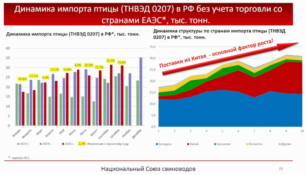 Отдельным поводом для беспокойства в 2025 году стал импорт птицы.